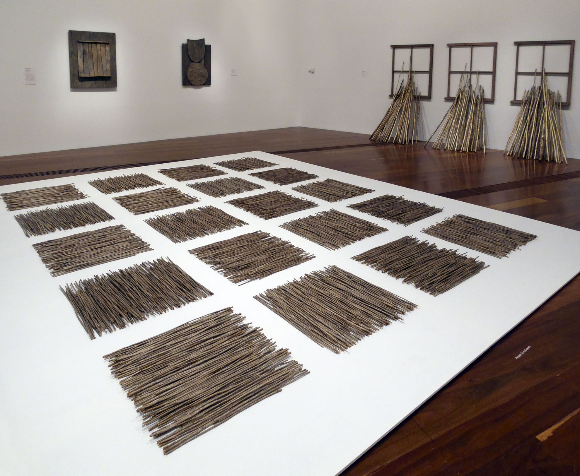 Exhibition title wall, didactic and label design for Found and Gathered: Rosalie Gascoigne / Lorraine Connelly-Northey, at the Ian Potter Centre: NGV Australia.